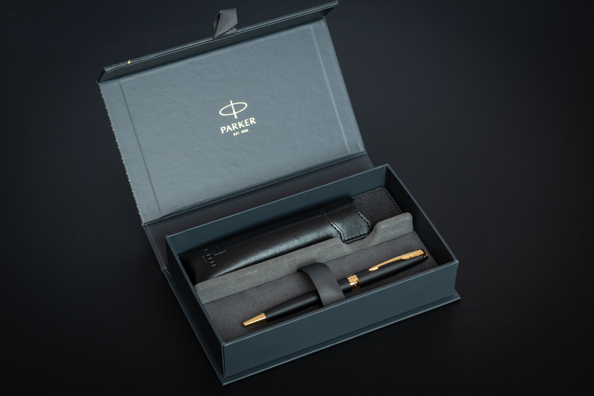 Набор Parker Sonnet Black GT (шариковая ручка + чехол) от официального дилера Parker в Хасавюрте. Вы можете дополнительно заказать гравировку, которая подчеркнет Вашу оригинальность и придаст памятность статусному подарку. Все ручки Паркер поставляются в фирменном футляре.