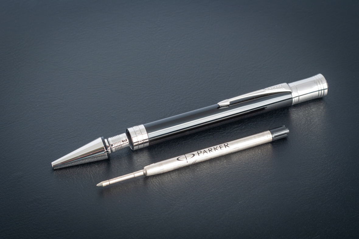 Шариковая ручка Parker Duofold Classic Centennial Black CT от официального дилера Parker в Хасавюрте. Вы можете дополнительно заказать гравировку, которая подчеркнет Вашу оригинальность и придаст памятность статусному подарку. Все ручки Паркер поставляются в фирменном футляре.